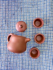 本格的な陶器のミニ茶器セットです。ひょうたん型のポットがとっても可愛いです。