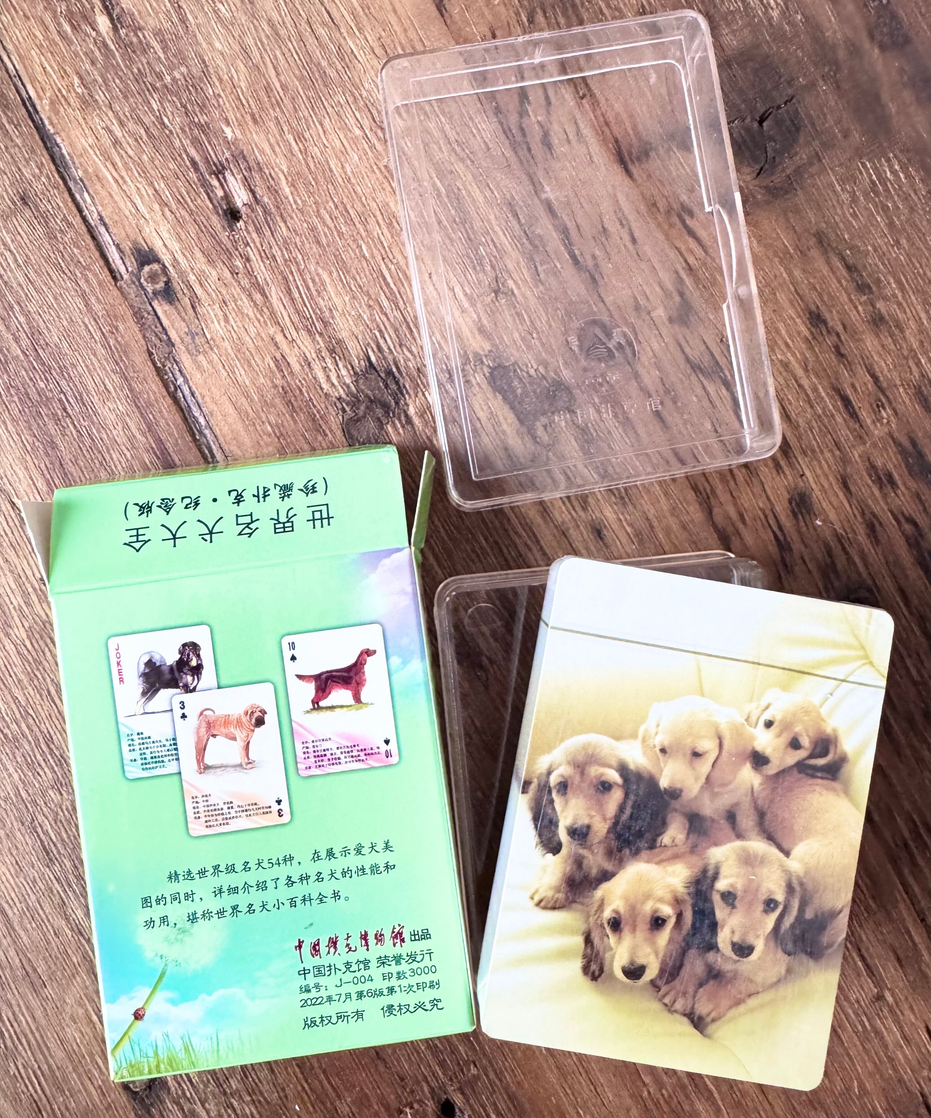 一枚一枚全部違う絵や写真で詳しい説明付きの可愛い動物の中国トランプです。