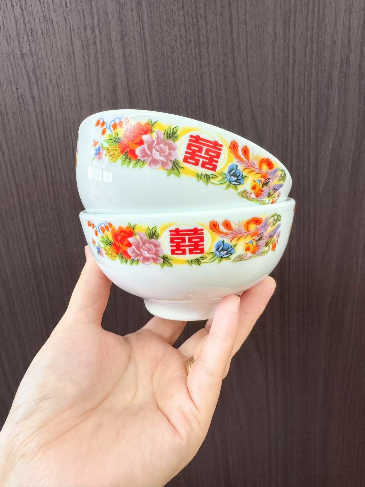 色鮮やかなピーコックとお花が可愛いダブルハピネスのお椀です。