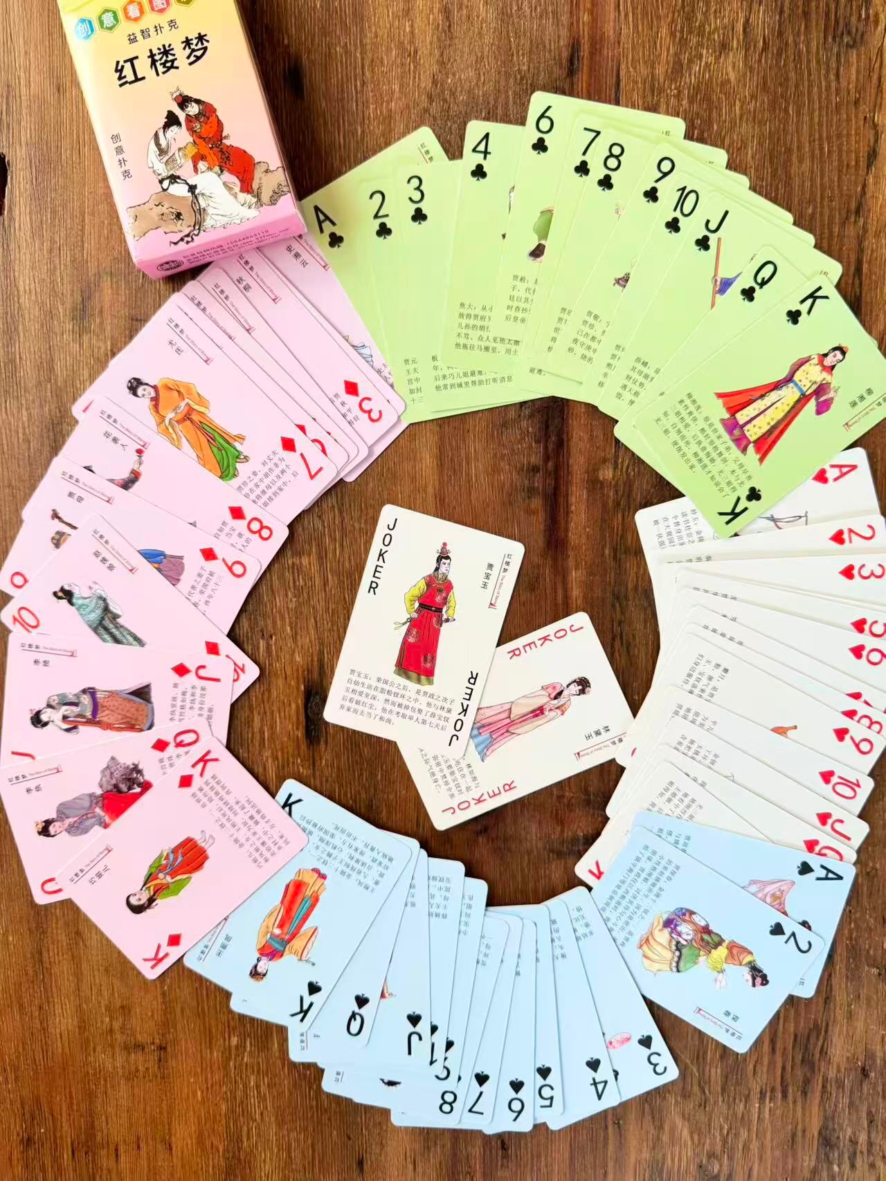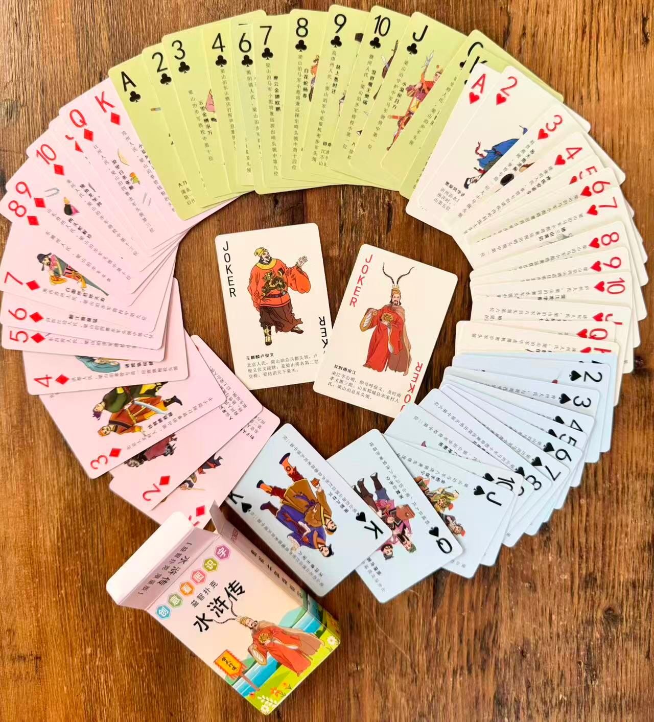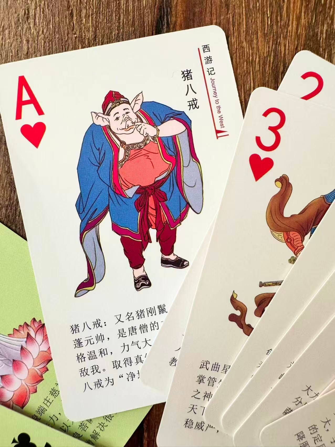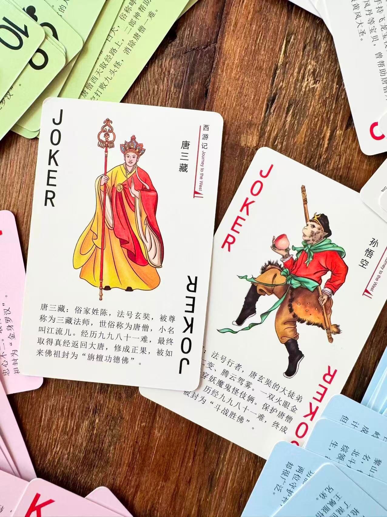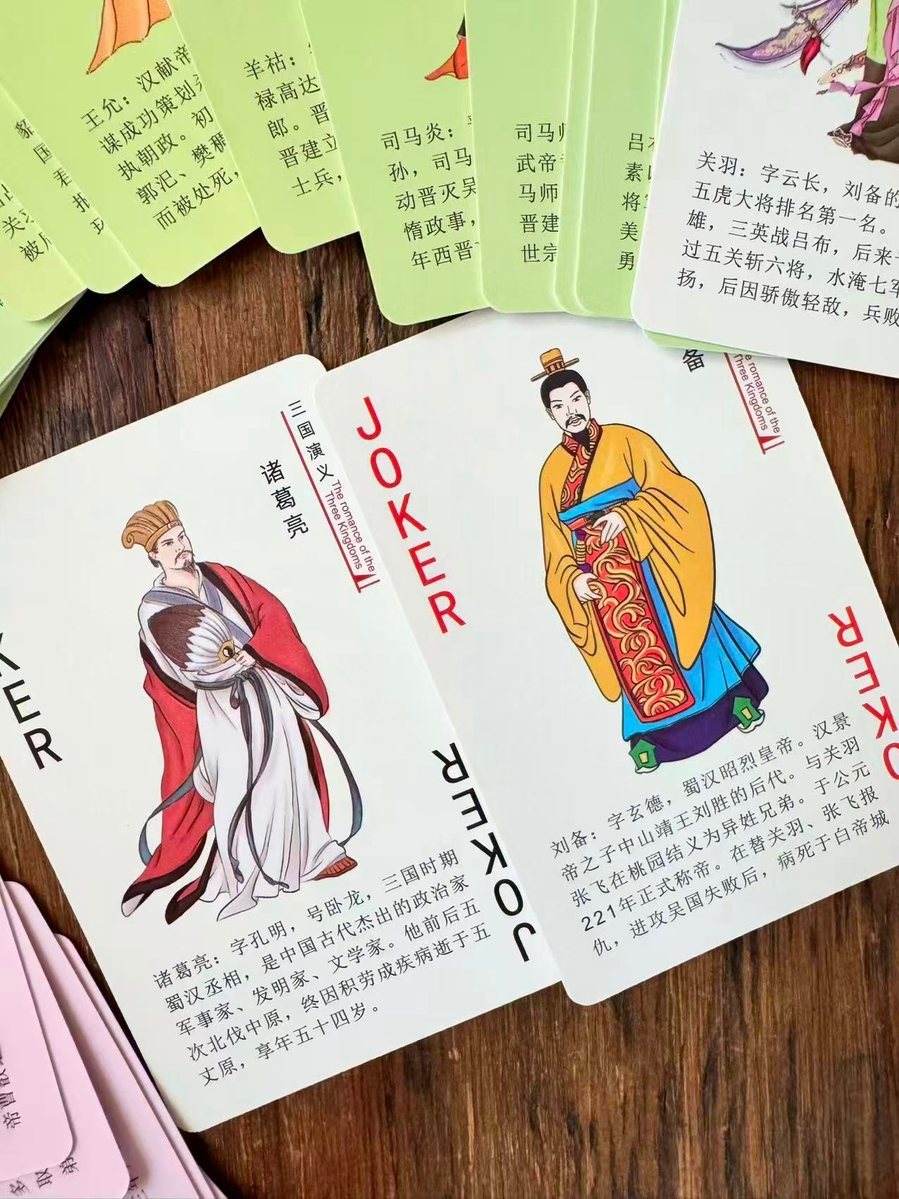 中国の古典文学に登場する人物を一人一人説明付きで描いている子供用の知育トランプです。
