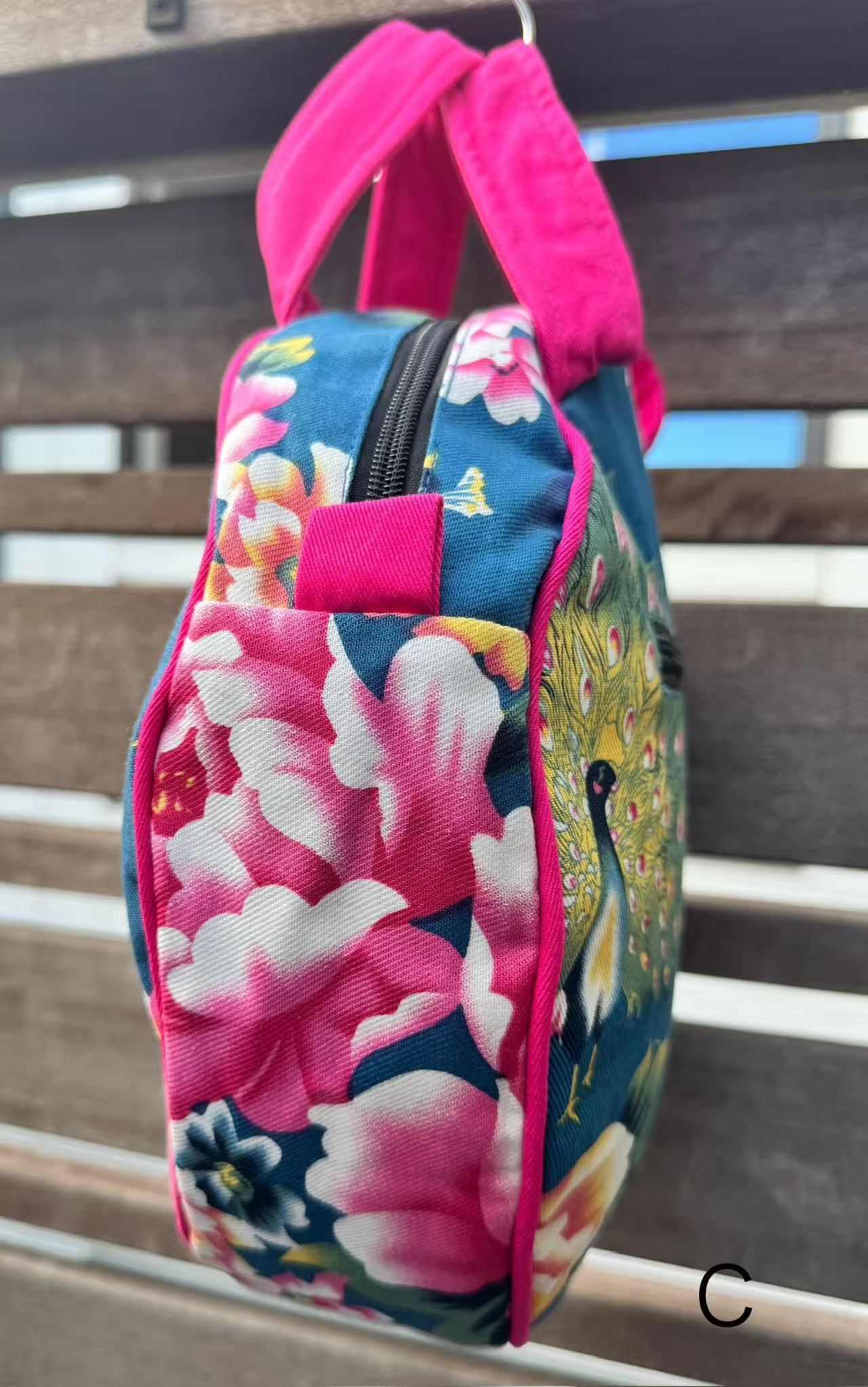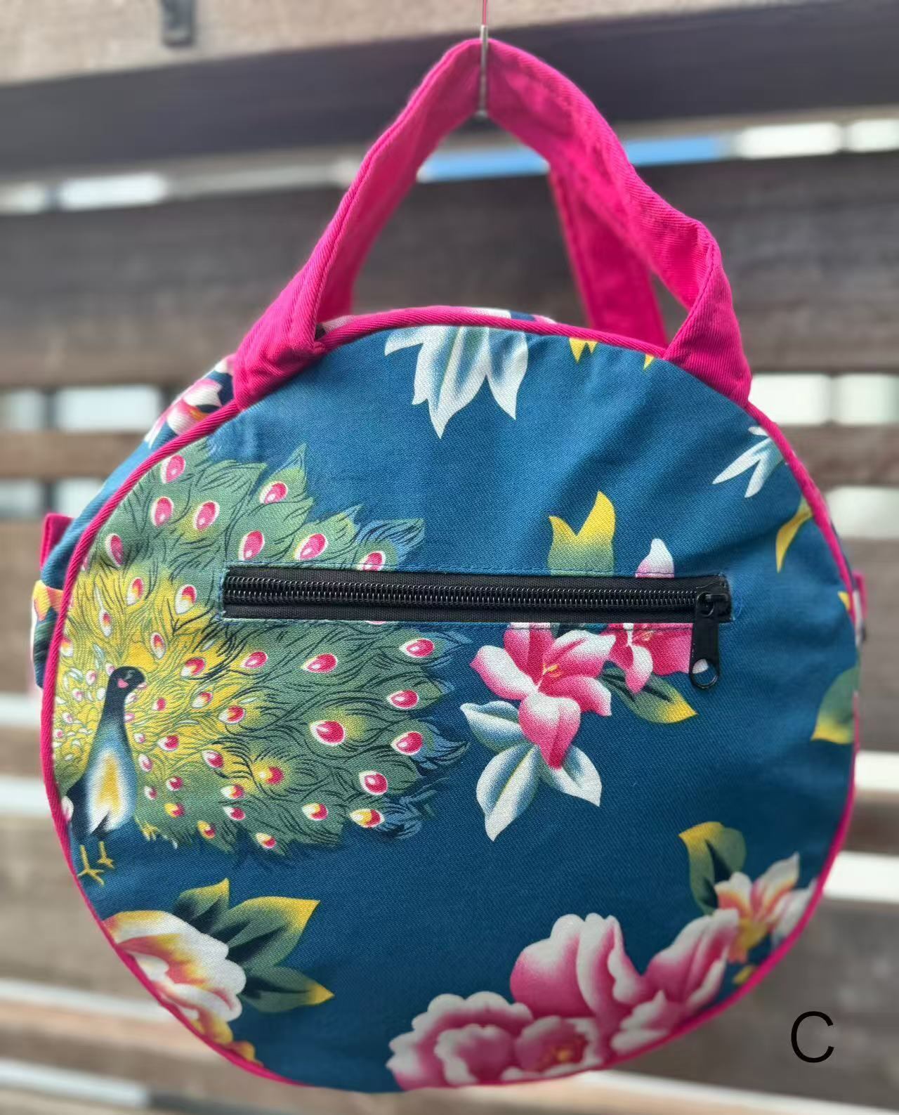 レトロな布で作られたまんまるバッグ