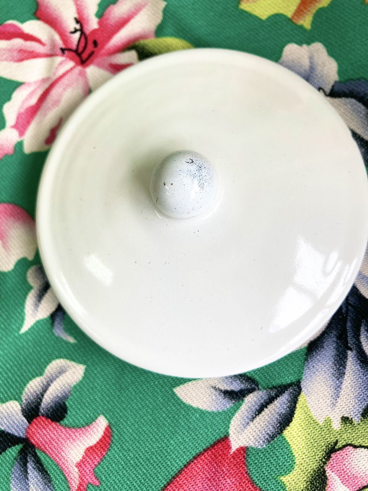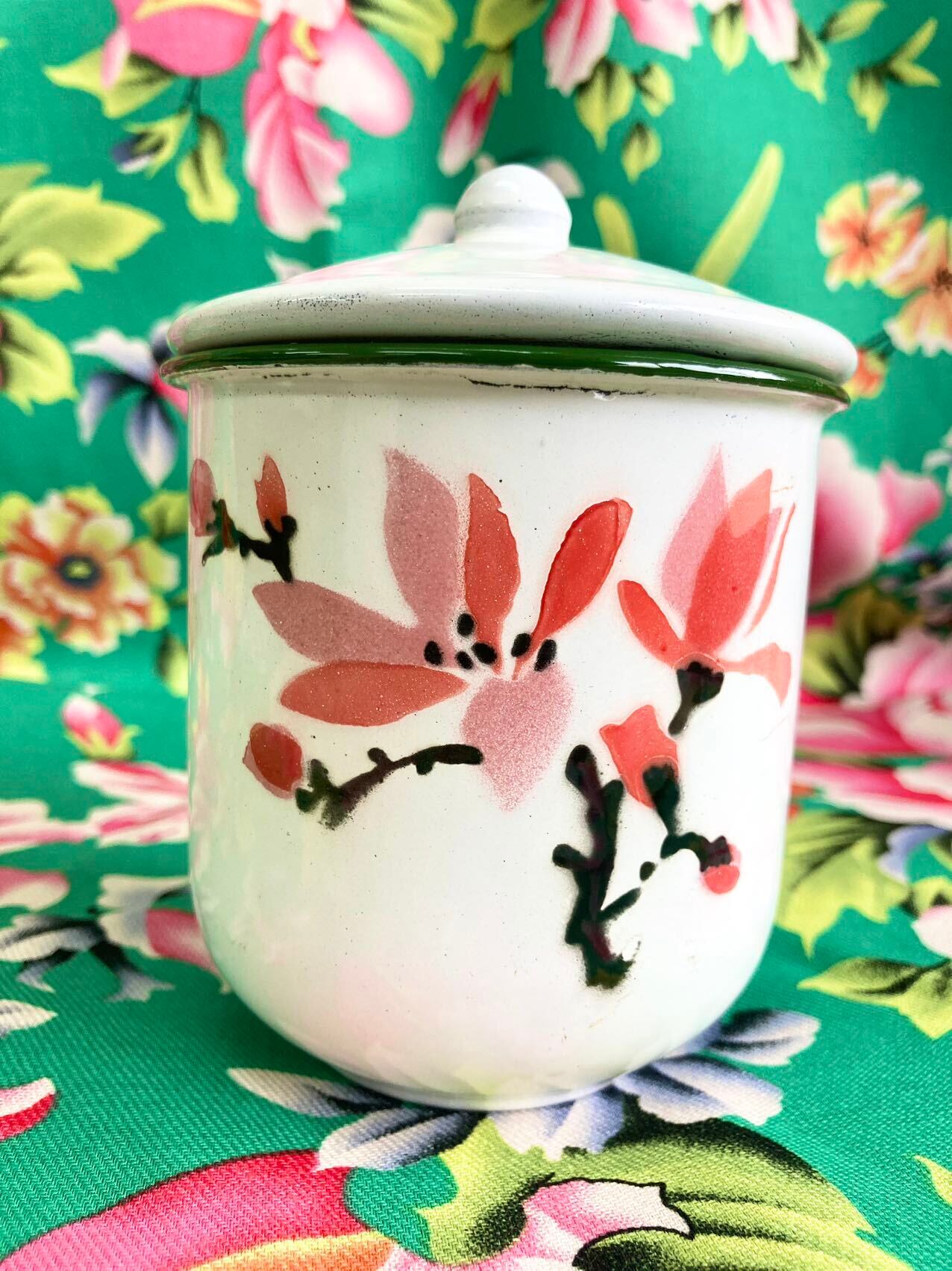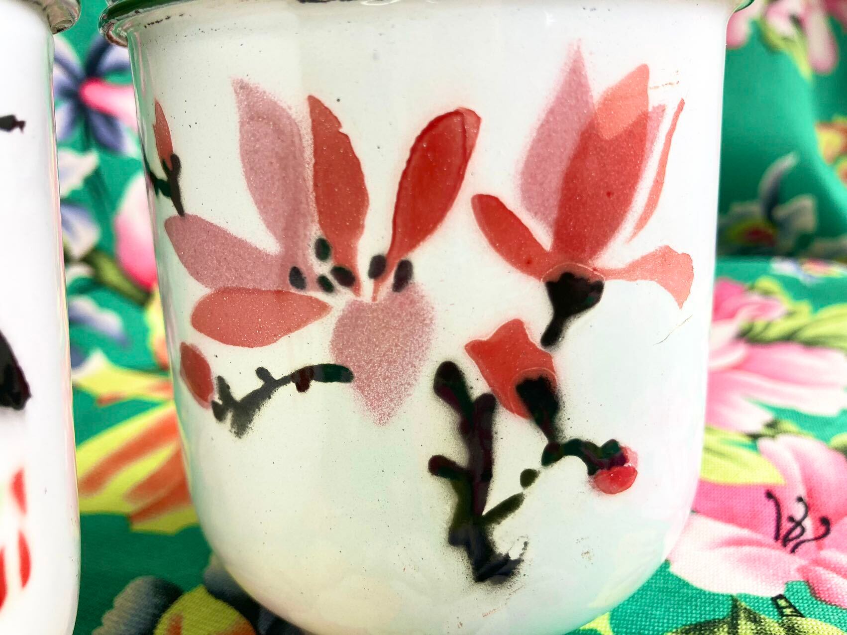 木蓮の花があしらわれ、縁は緑色です。琺瑯のむら、カケ、色のむらなどあり、衝撃にも弱いですが、生産量が少なく、現在ではなかなかお目にかかれない大変貴重なものです。