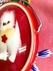 80年代デッドストックのふわふわ猫ちゃんの鏡です。猫ちゃんの表情がとっても可愛いです。猫ちゃんを閉じ込めているドームはガラス製です。現在では製造はおろか、中々市場でも出会わない大変レアなものです。足の金属が錆びていたり、鏡に傷やくもりがあったり、難は色々ありますが、大変貴重なものです。お好きな方はぜひ手に入れてください。見れば見るほど好きになるはずです。