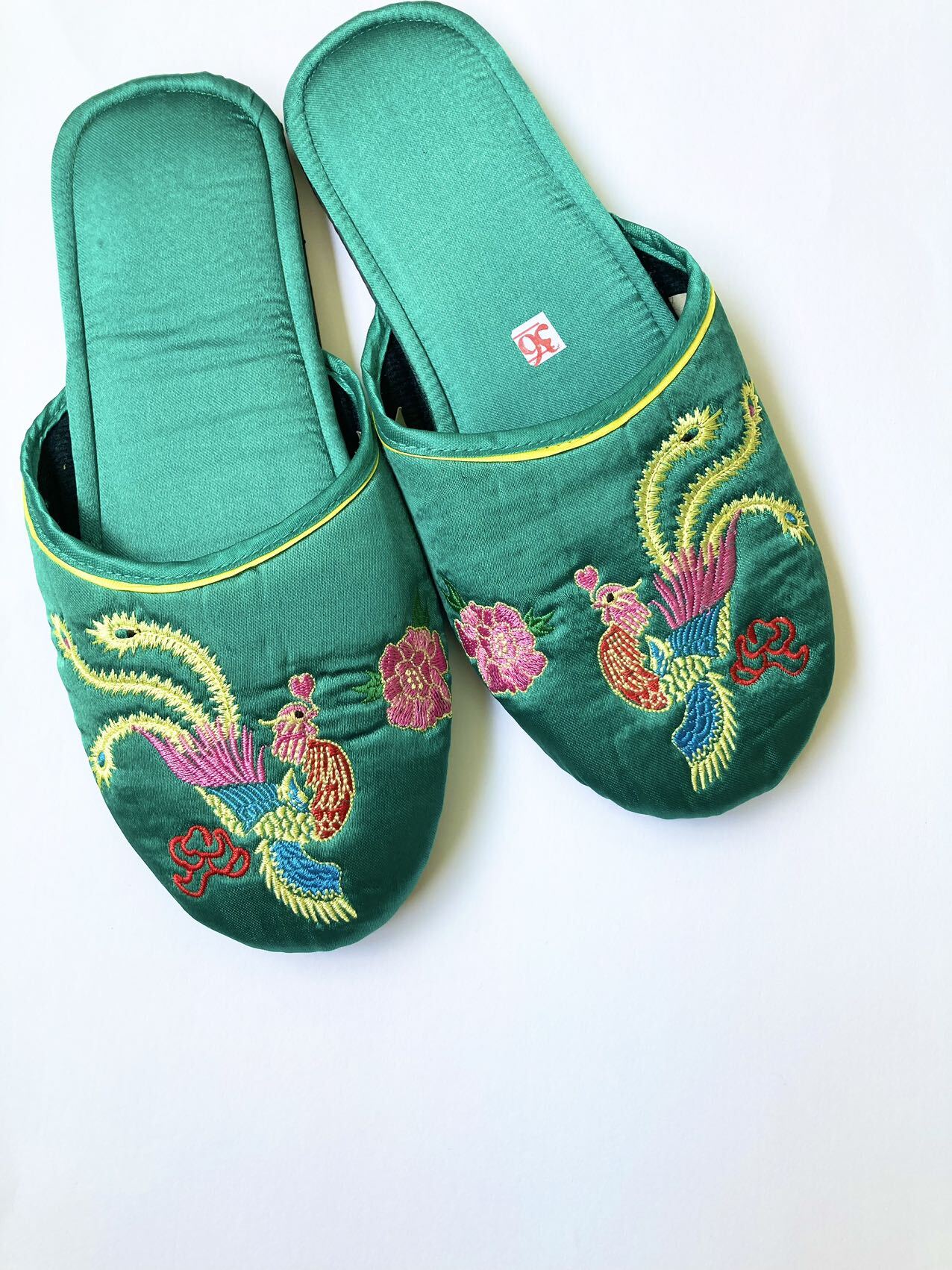 刺繍サテンスリッパ(ピーコック)