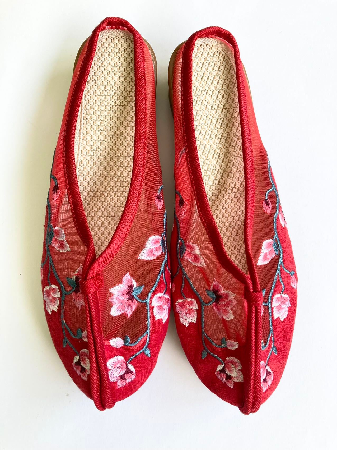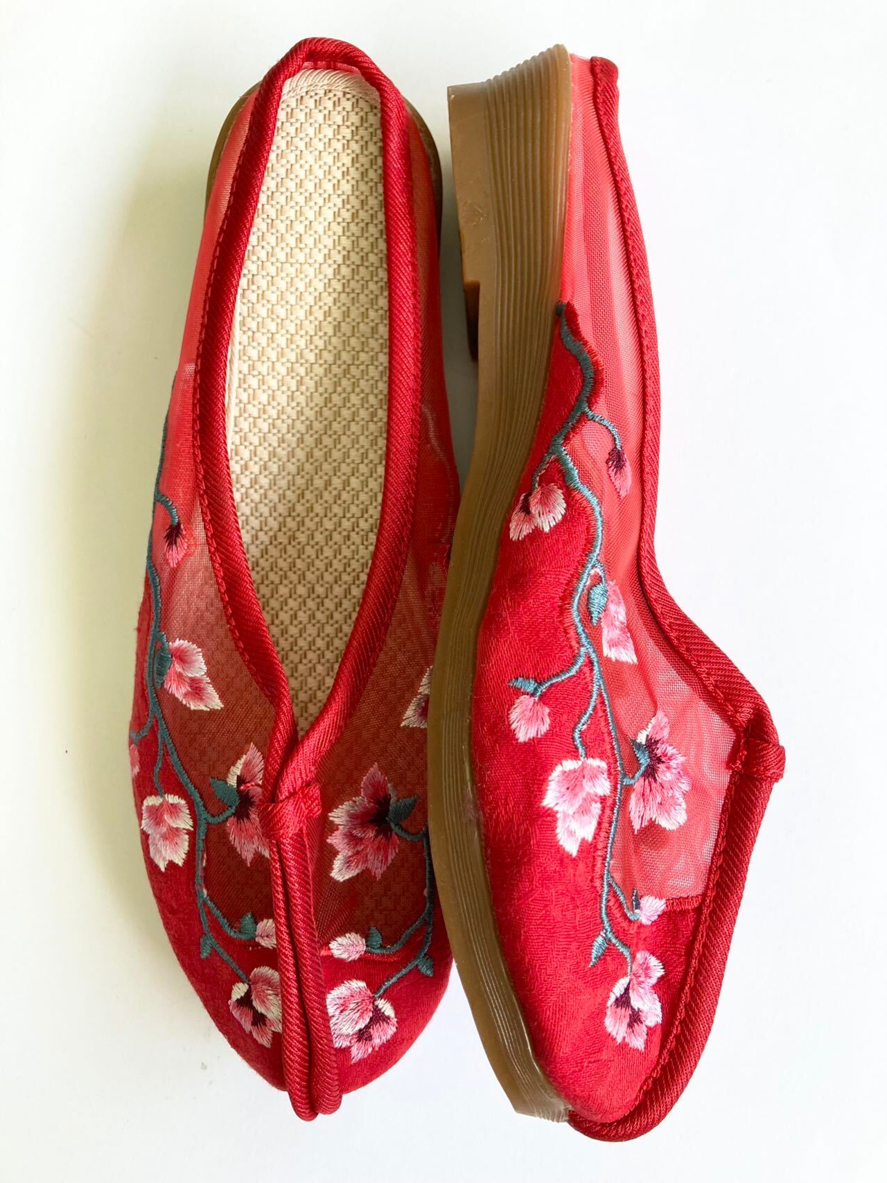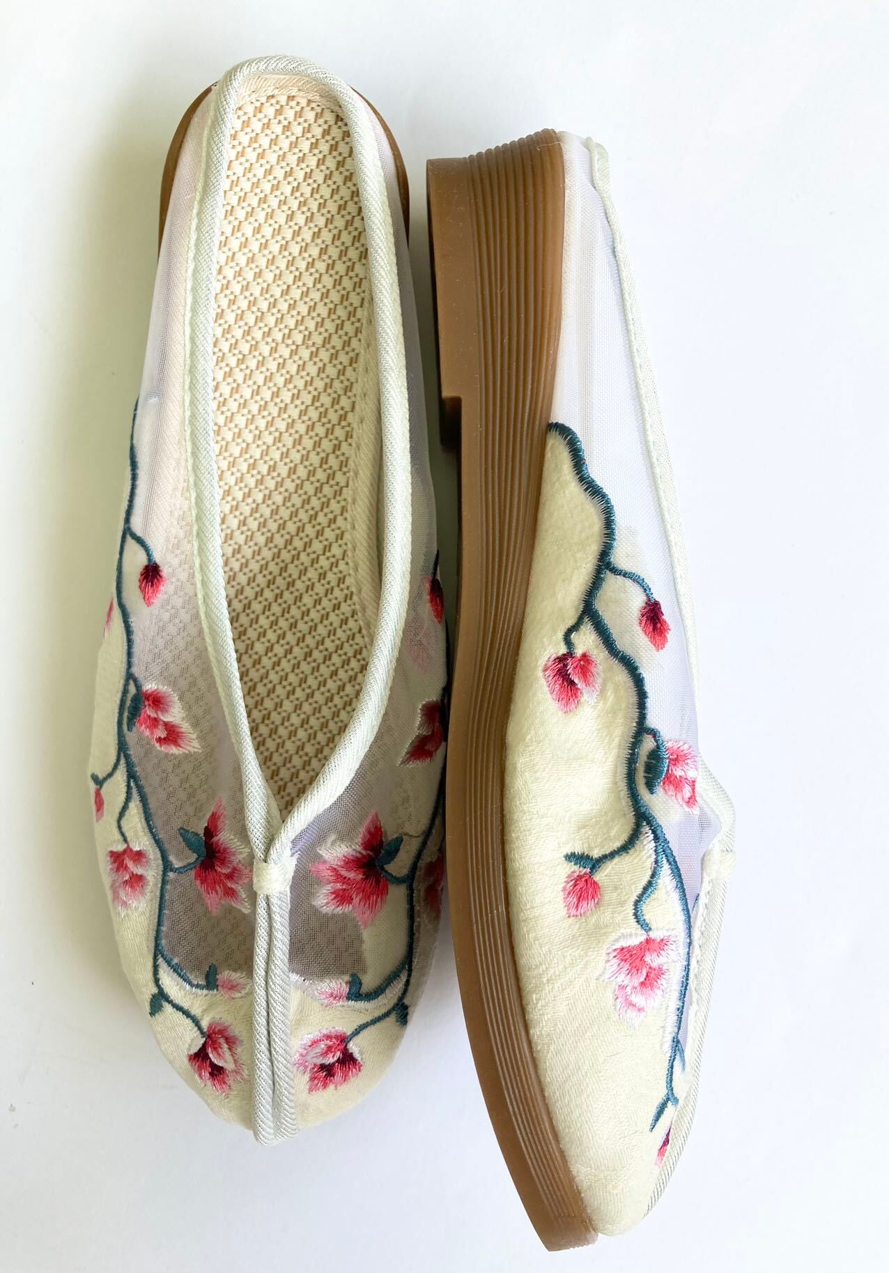 小花が刺繍されたスケスケチャイナシューズです。とにかく可愛いです。