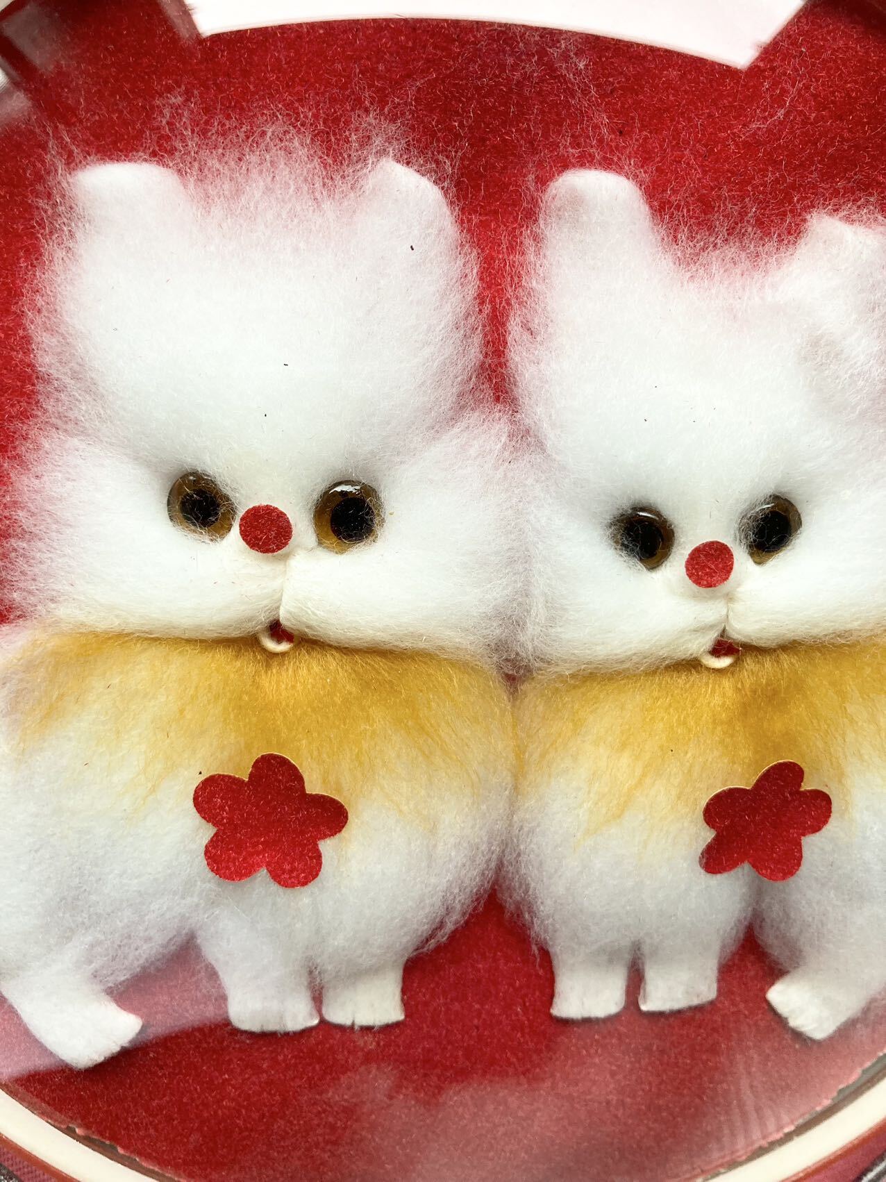 80年代デッドストックのふわふわ猫ちゃんの鏡です。猫ちゃんの表情がとっても可愛いです。猫ちゃんを閉じ込めているドームはガラス製です。現在では製造はおろか、中々市場でも出会わない大変レアなものです。足の金属が錆びていたり、鏡に傷やくもりがあったり、難は色々ありますが、大変貴重なものです。お好きな方はぜひ手に入れてください。見れば見るほど好きになるはずです。