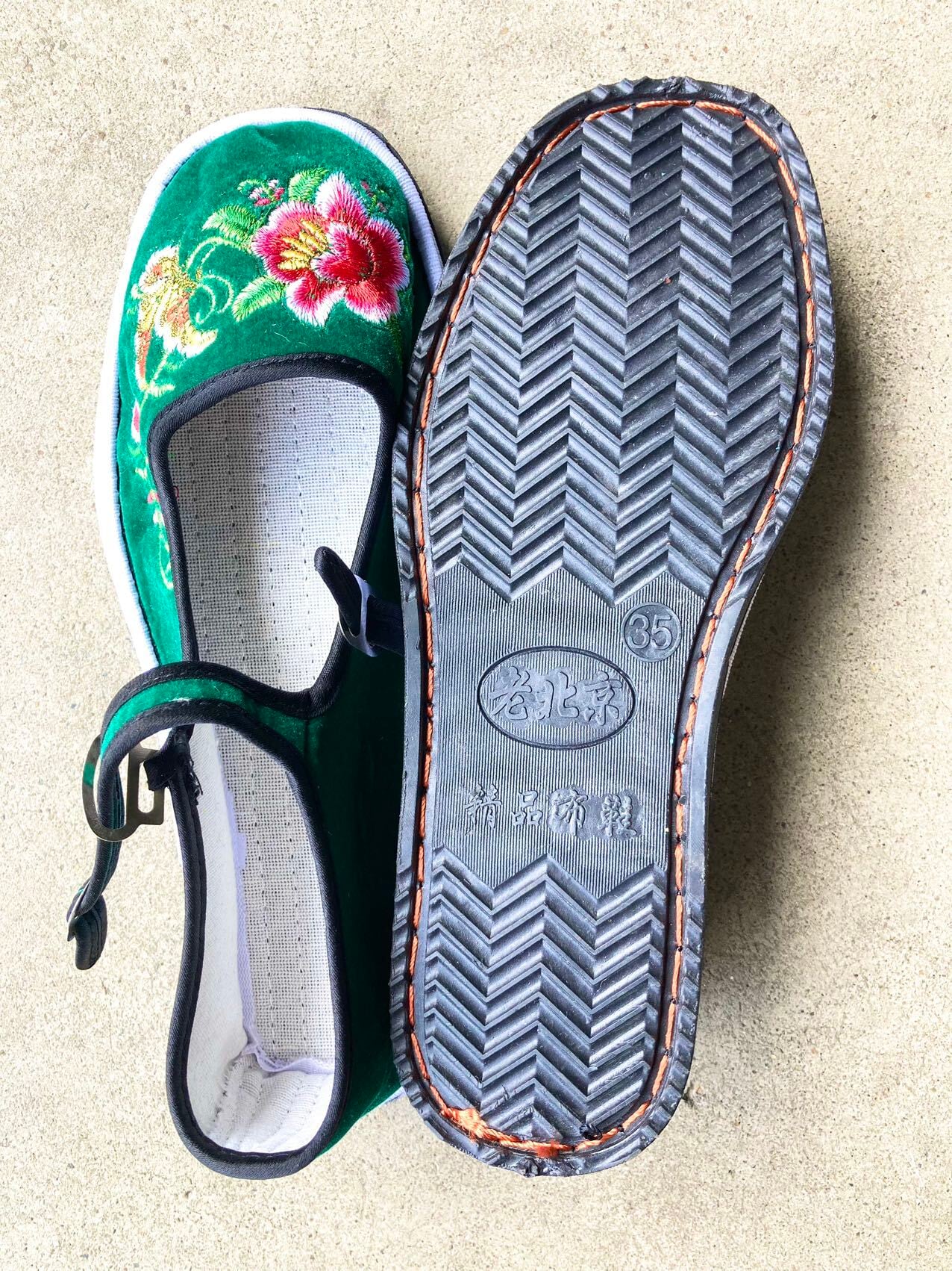 お花刺繍ベロアカンフーシューズ(老北京布靴)