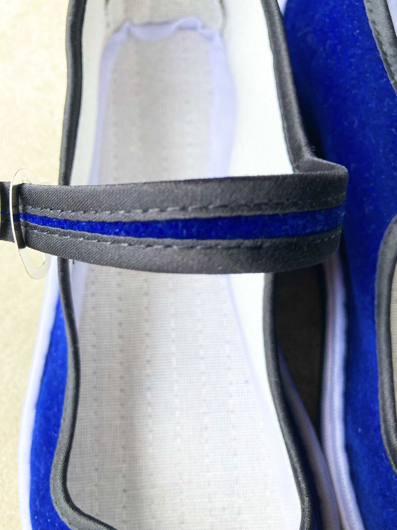 パキッとした色が可愛いベロアのカンフーシューズです。