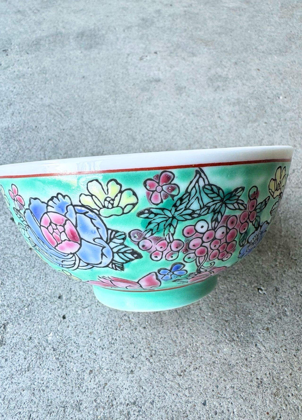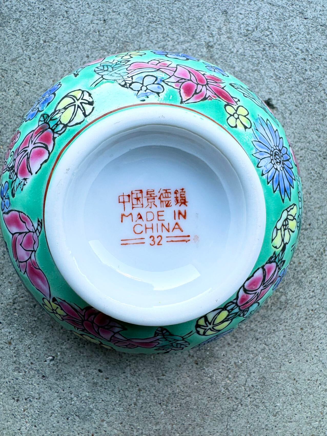 草花が描かれたカラフルな景徳鎮のご飯茶碗です。