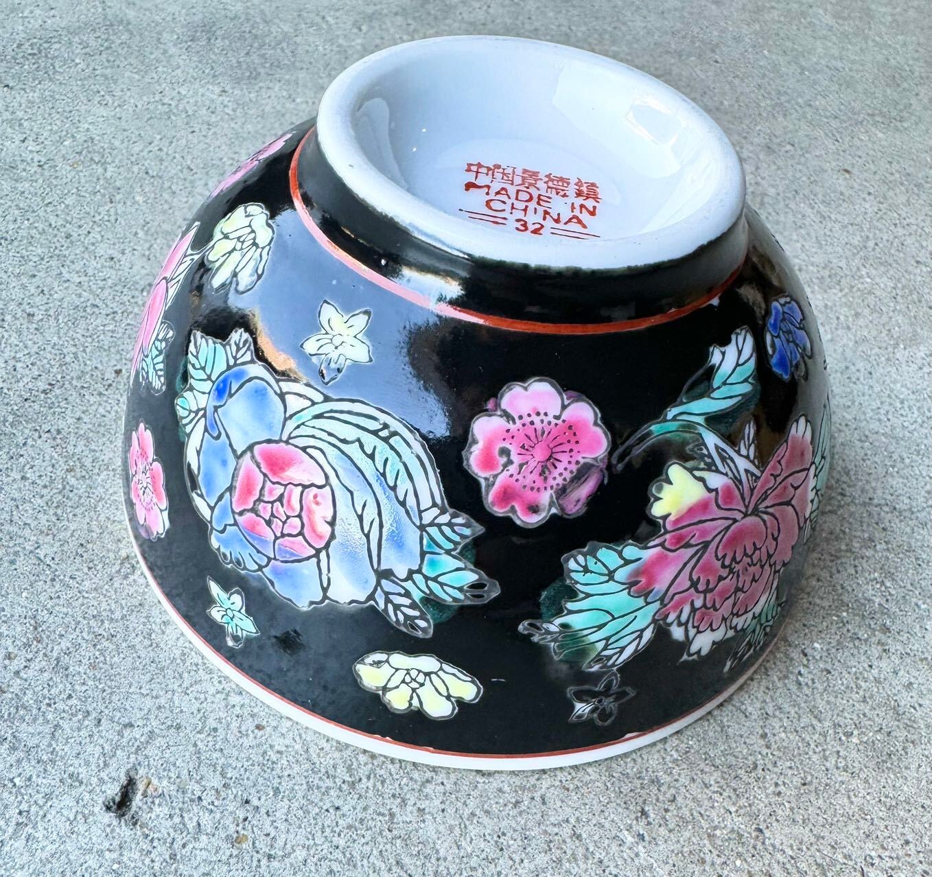 草花が描かれたカラフルな景徳鎮のご飯茶碗です。