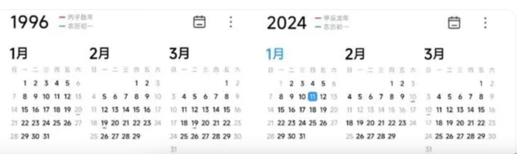 今年は何と1996年の閏年と元旦の曜日が全く同じだそうで、中国ではわざわざ1996年のカレンダーを探して手にいれる方がいる程。。。もしかしたら2024年版もプレミアが付くかも?