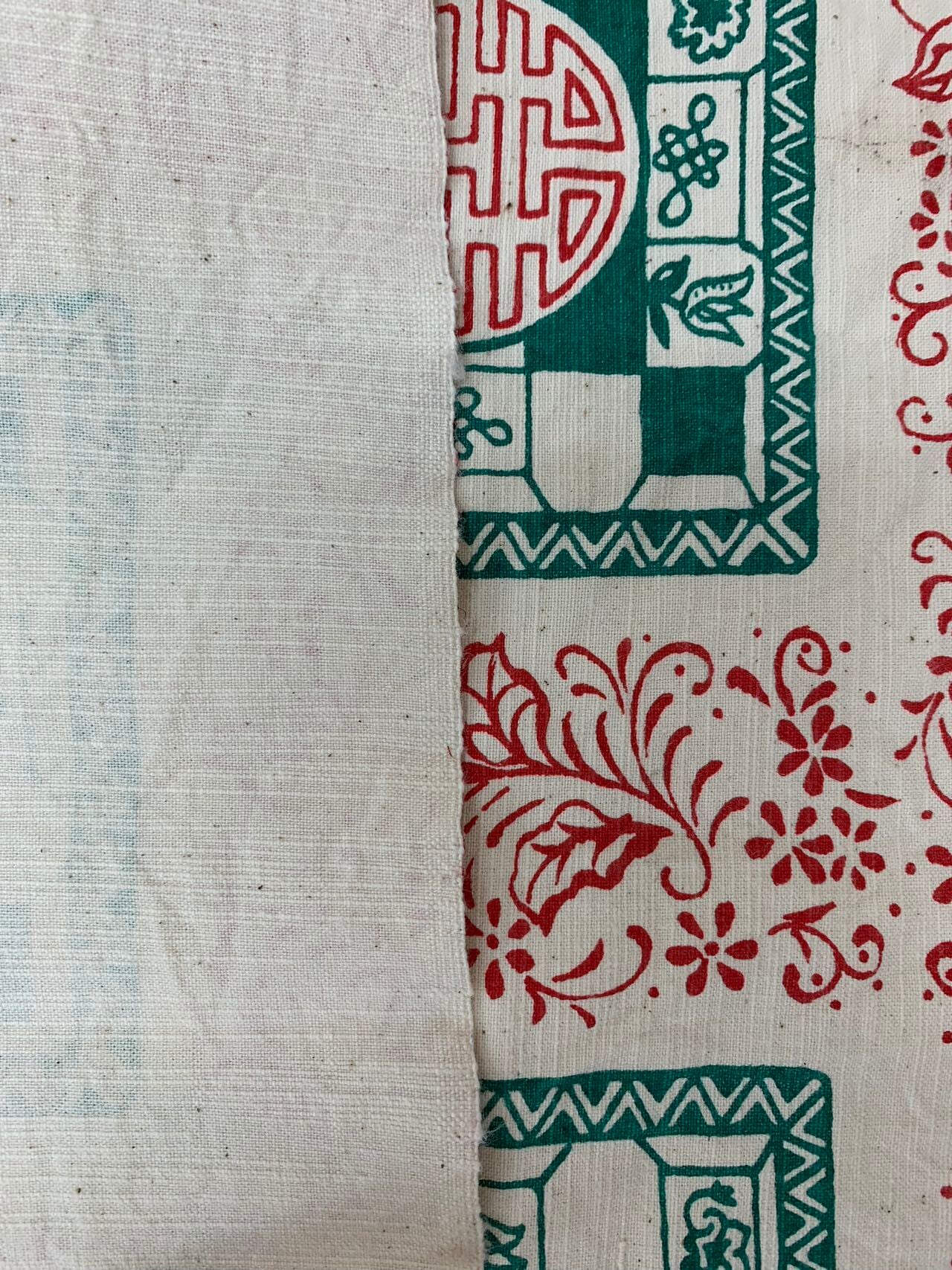 手仕事で作られた綿100%の崇明土布です。手織りと一点一点手作業でプリントした生地は荒く、とっても丈夫です。