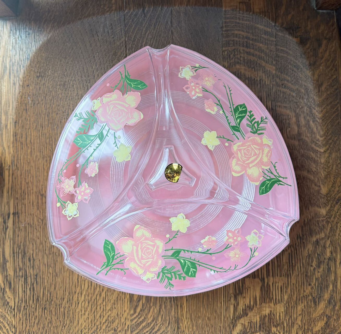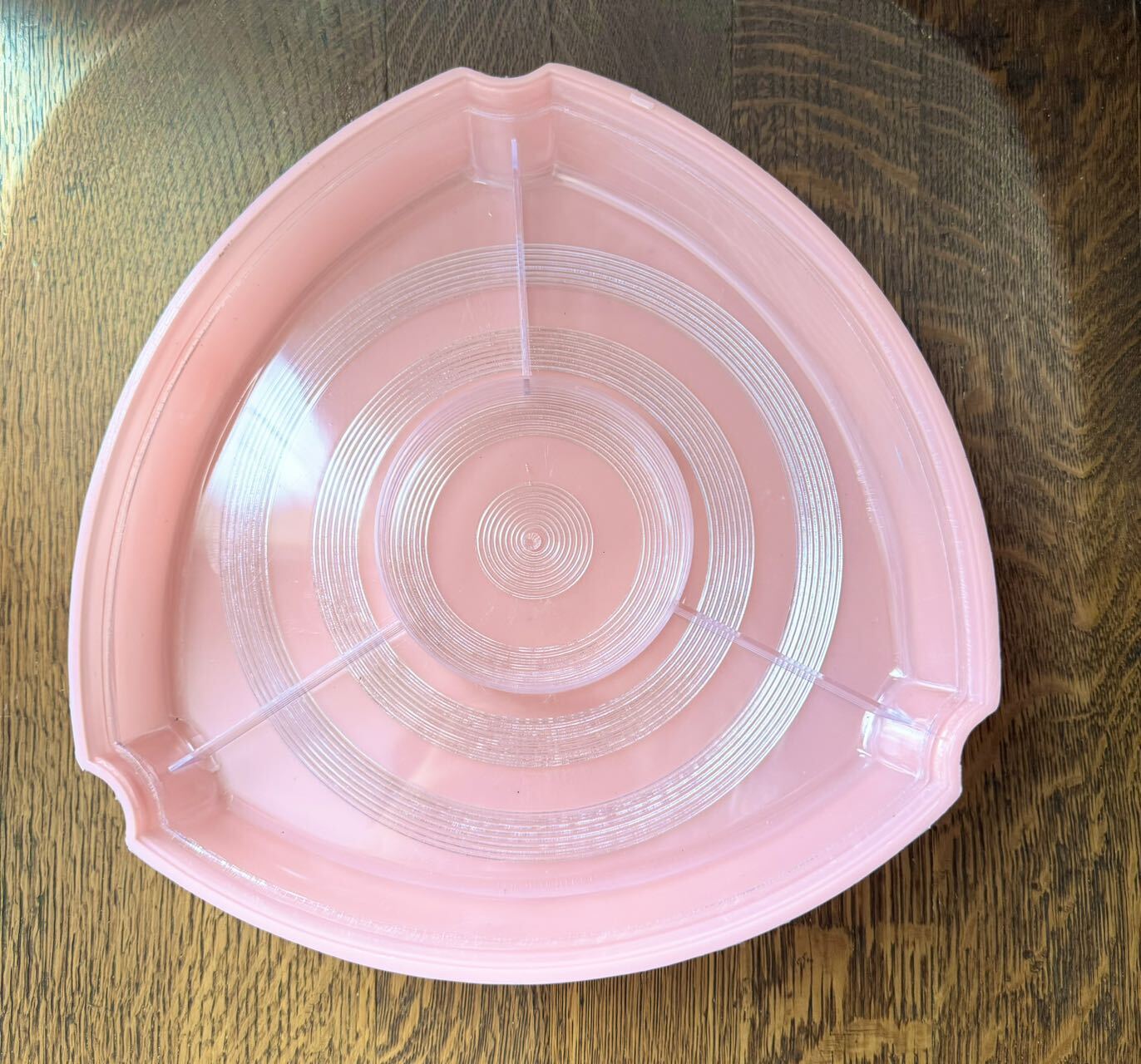 ピンクが可愛い大きな三角形のフルーツ入れです。