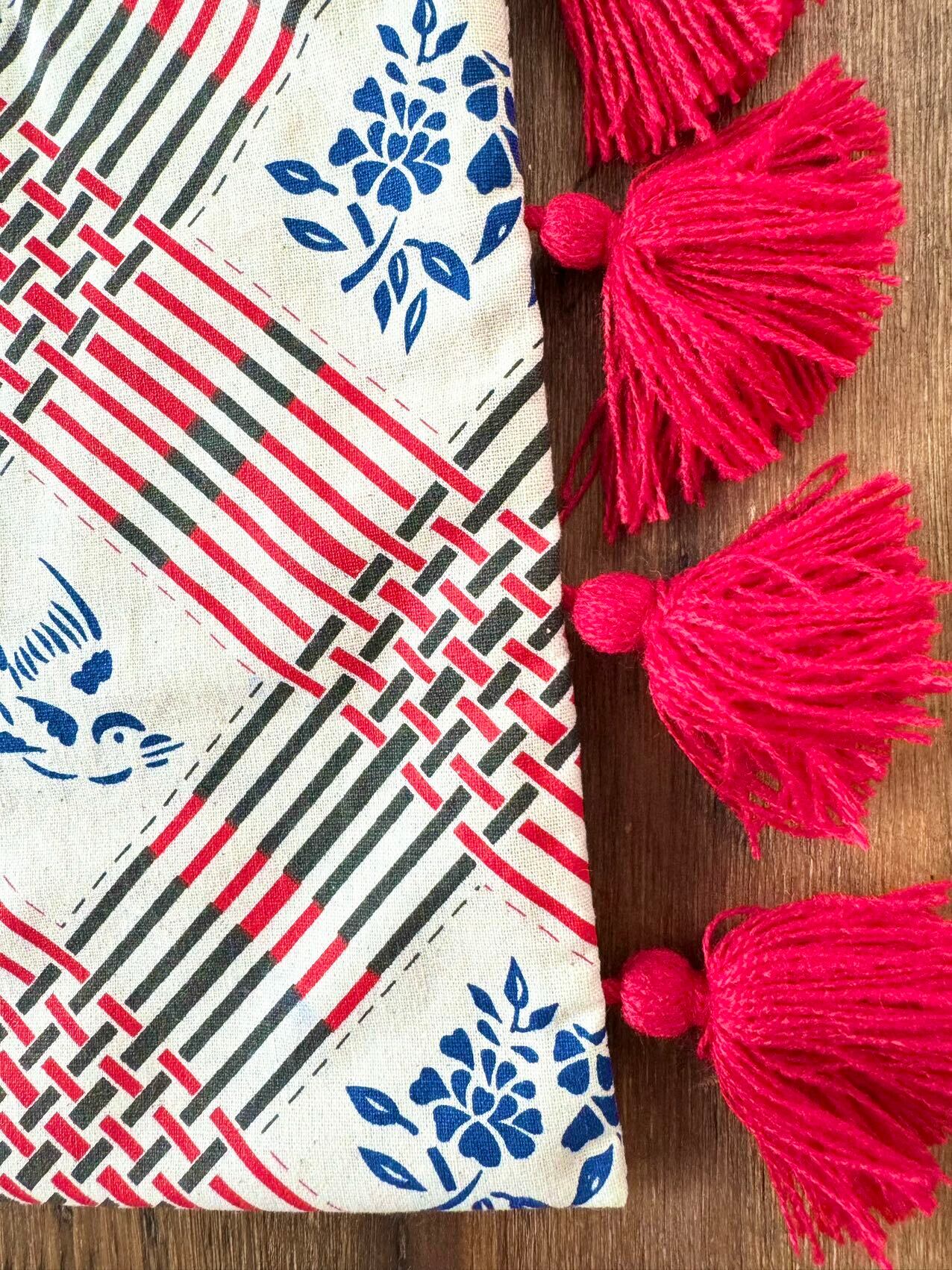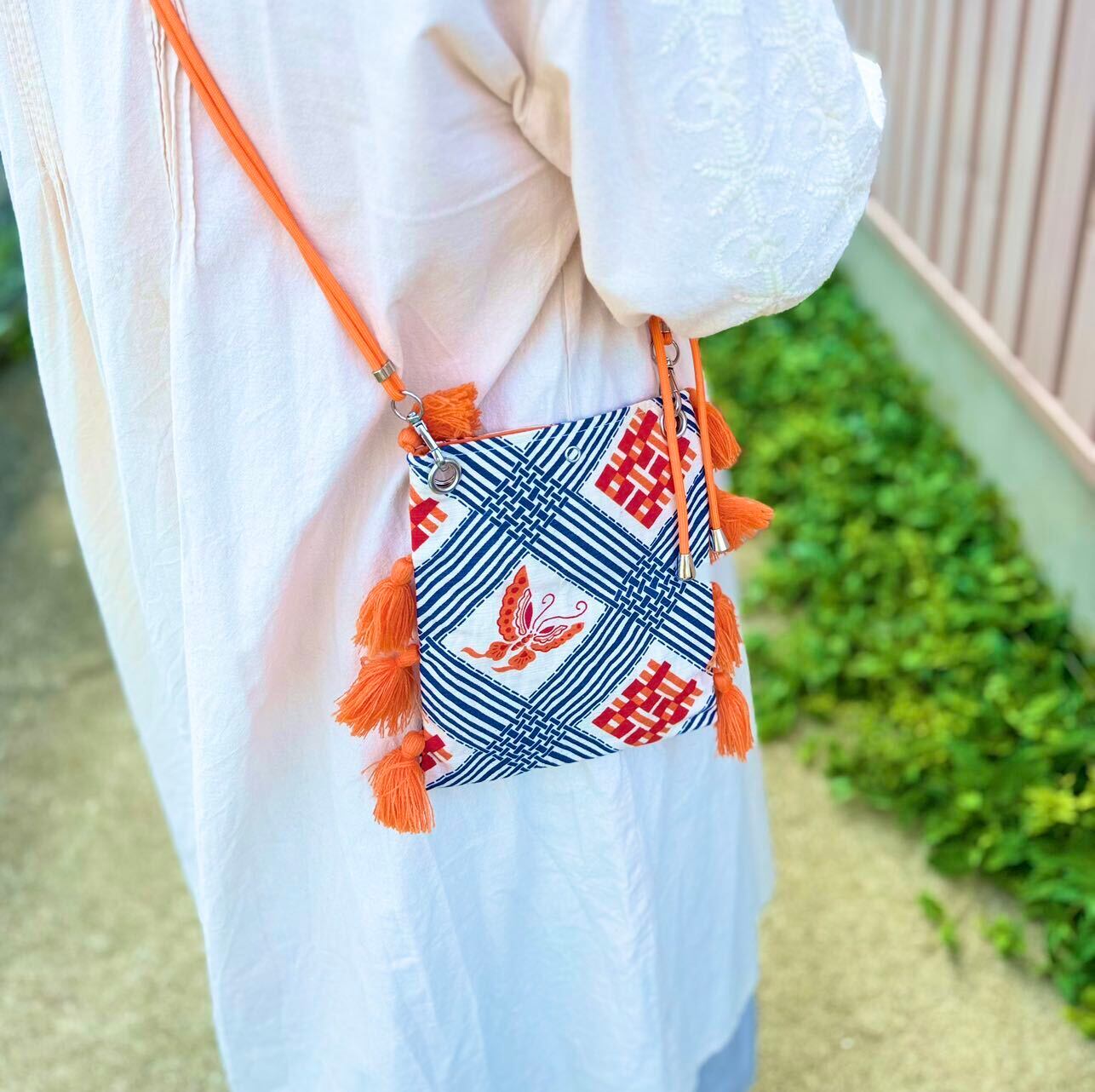 そんな崇明土布で作られたショルダーバッグ。サイドのタッセルがポイント!!