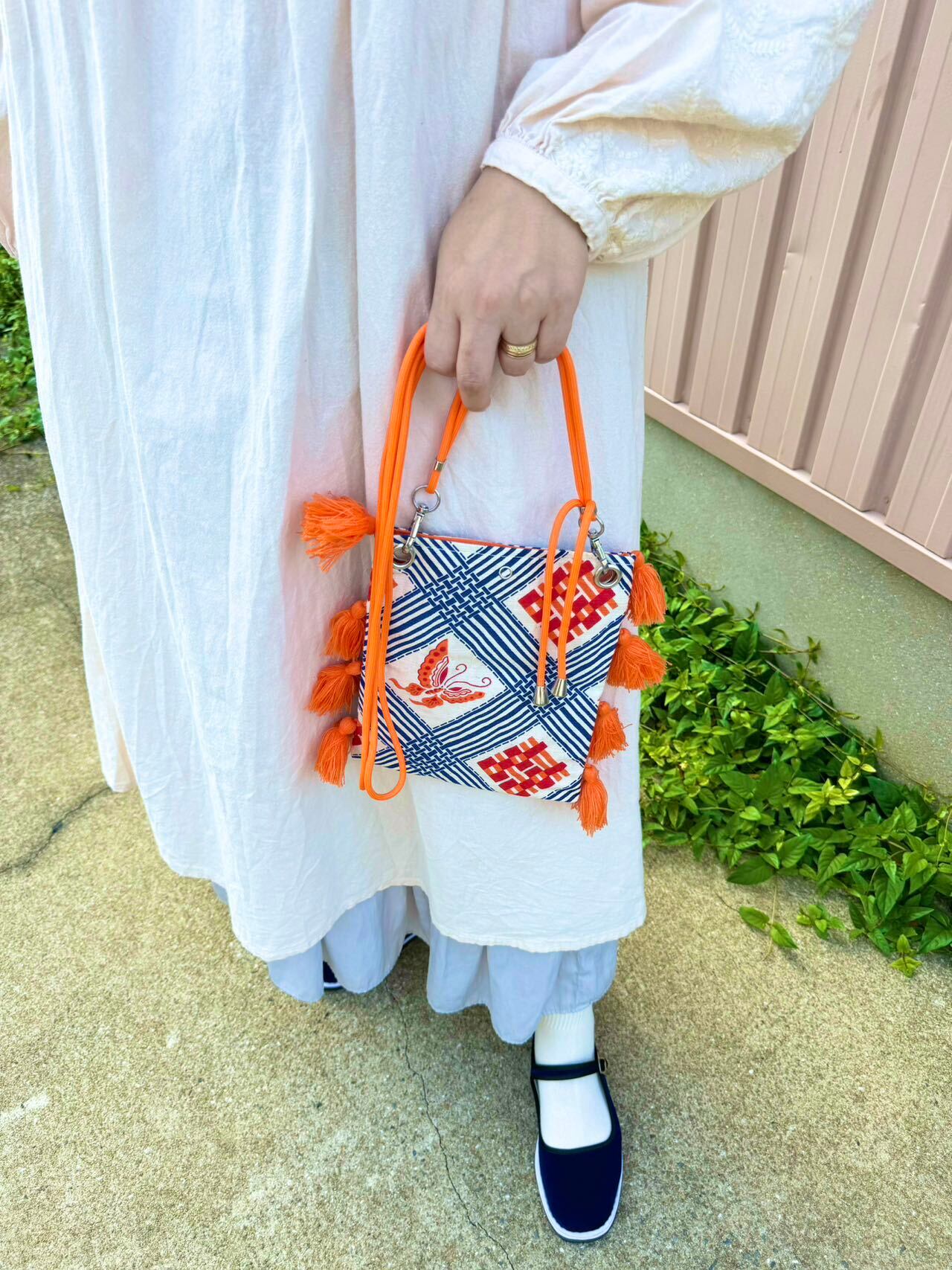 そんな崇明土布で作られたショルダーバッグ。サイドのタッセルがポイント!!