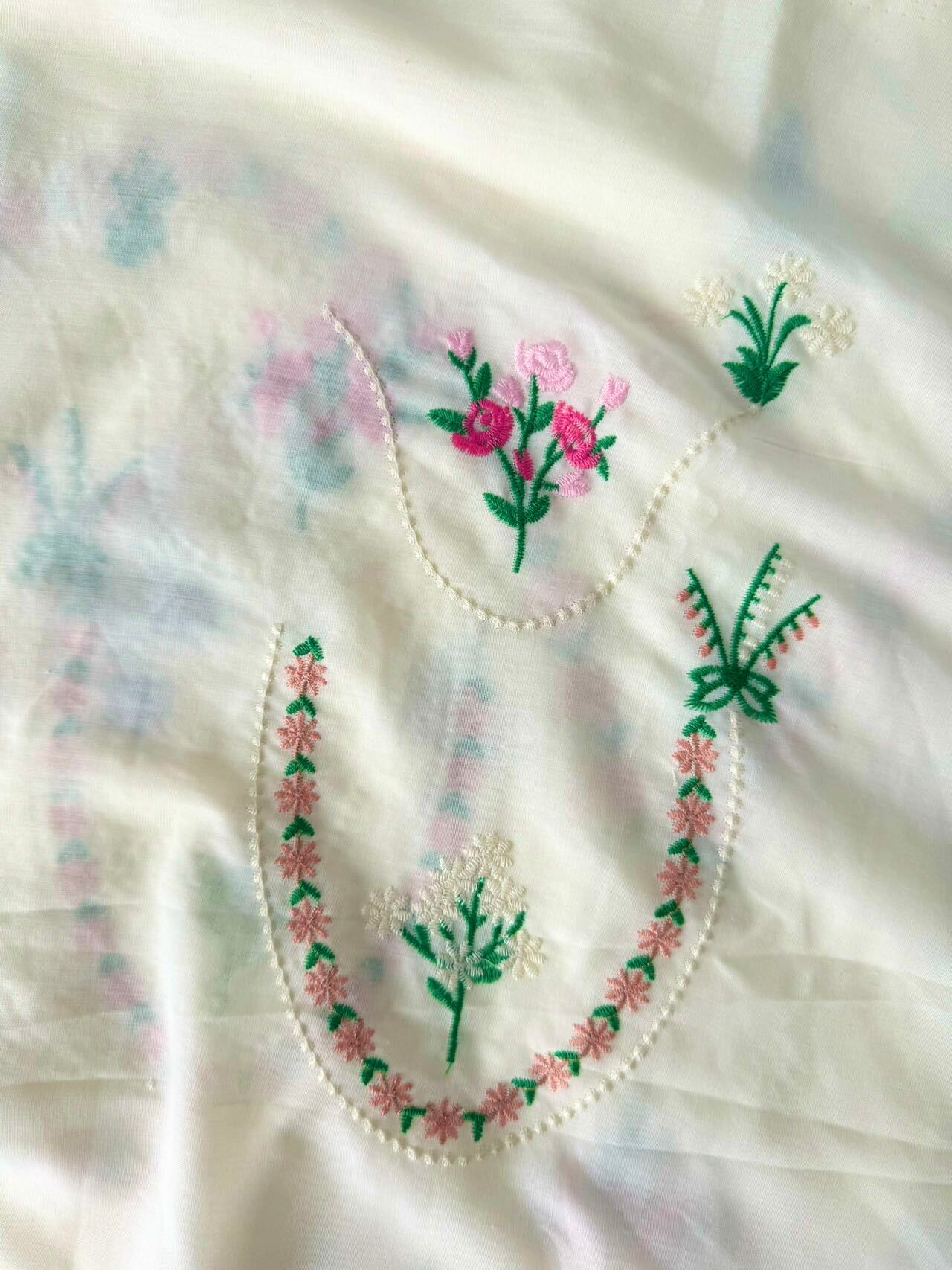 お花の刺繍が施されたなみなみのレトロで可愛いカットクロスです。