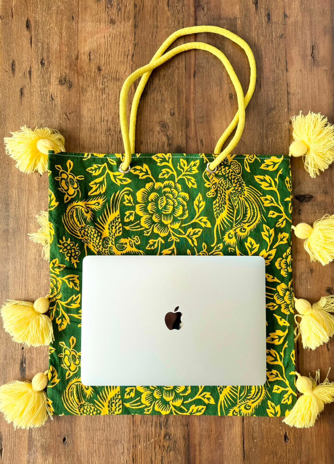 そんな崇明土布で作られたビッグトートバッグ。サイドのタッセルがポイント!!