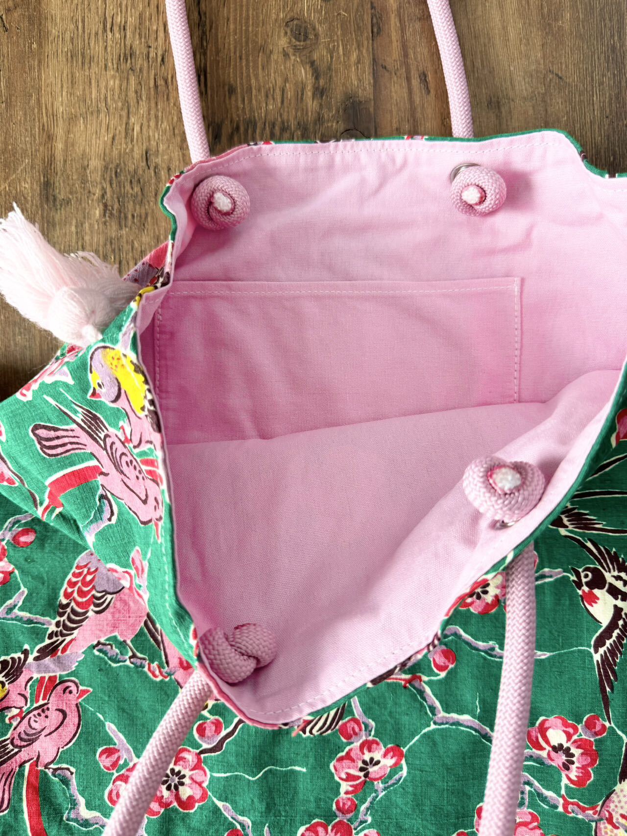 そんな崇明土布で作られたビッグトートバッグ。サイドのタッセルがポイント!!