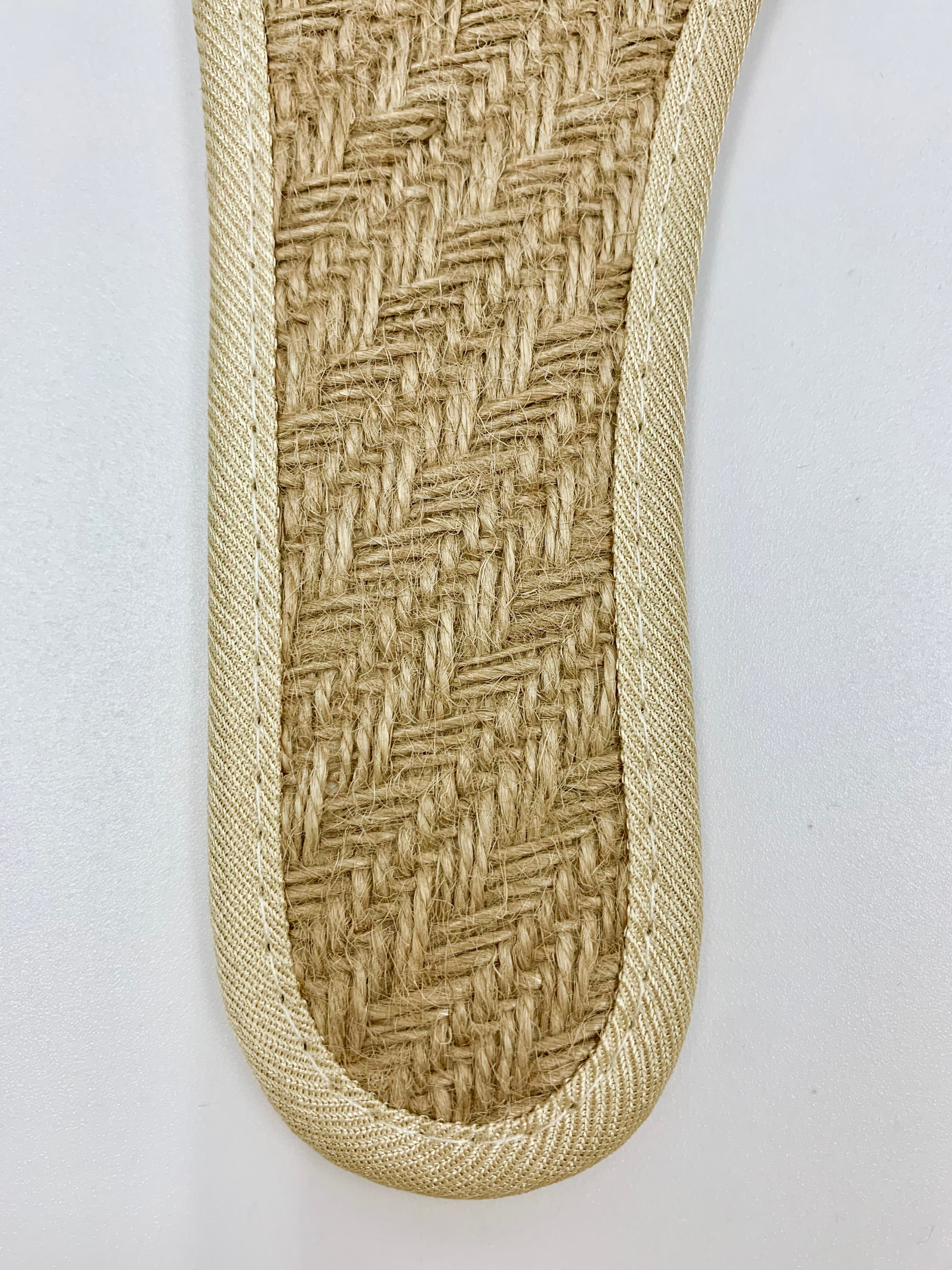 綿と麻の絶妙なコンビネーションで作られたこのインソールは、履き心地の良さを追求しました。通気性が抜群で、蒸れにくくなっていますので、長時間の着用でも快適さを保ちます。見た目にもこだわり、シンプルでおしゃれなデザインに仕上げています。